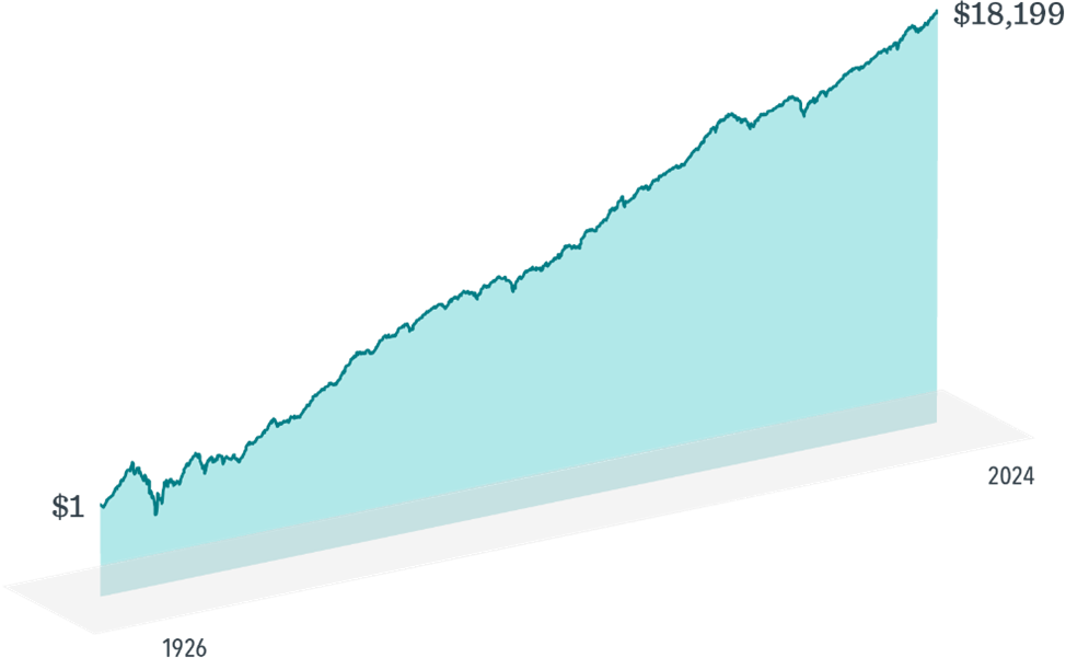 1. Average annualized return for the S&P 500 is 10.4% (1926–2024) and does not account for inflation. Source: S&P data © 2025 S&P Dow Jones Indices LLC, a division of S&P Global.